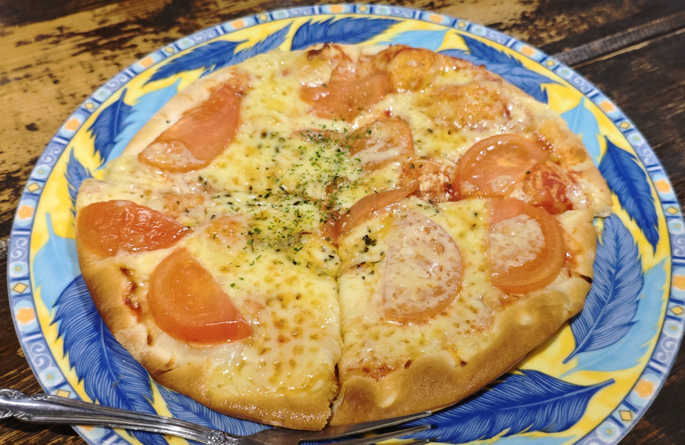 オススメボードに載ってた珍しいトマトピザ。プロパーメニューにあるしらすピザとは少し違う味わい。チーズタップリだけど、想像以上にサッパリ味。コレにスライスガーリックとか載せて焼いたら・・・個人的に超好みかも。