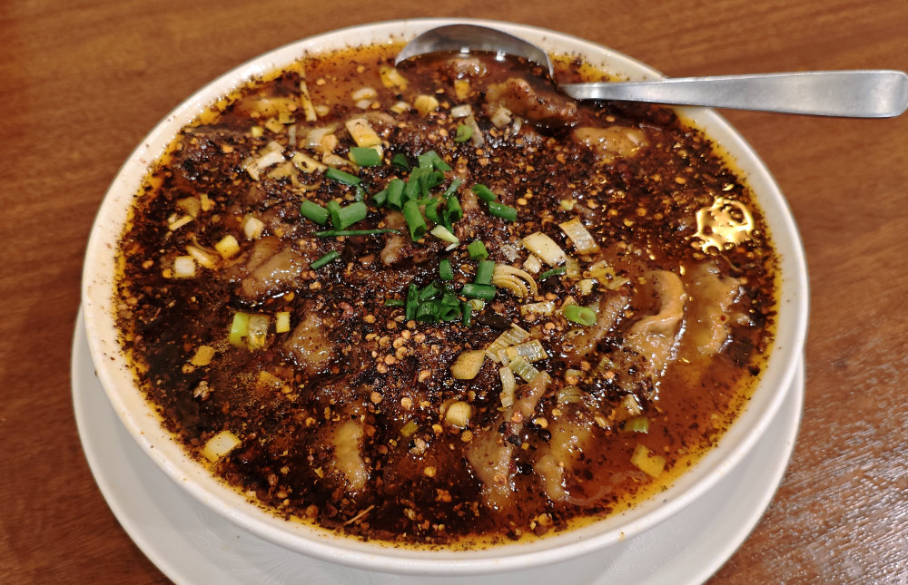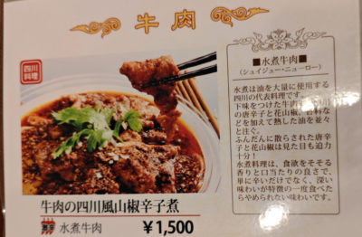 お目当ては前回も食べた水煮牛肉。4年前の写真見たら・・・20円だけお値段アップ。このインフレ下での価格(ほぼ)キープは頑張っていますな。