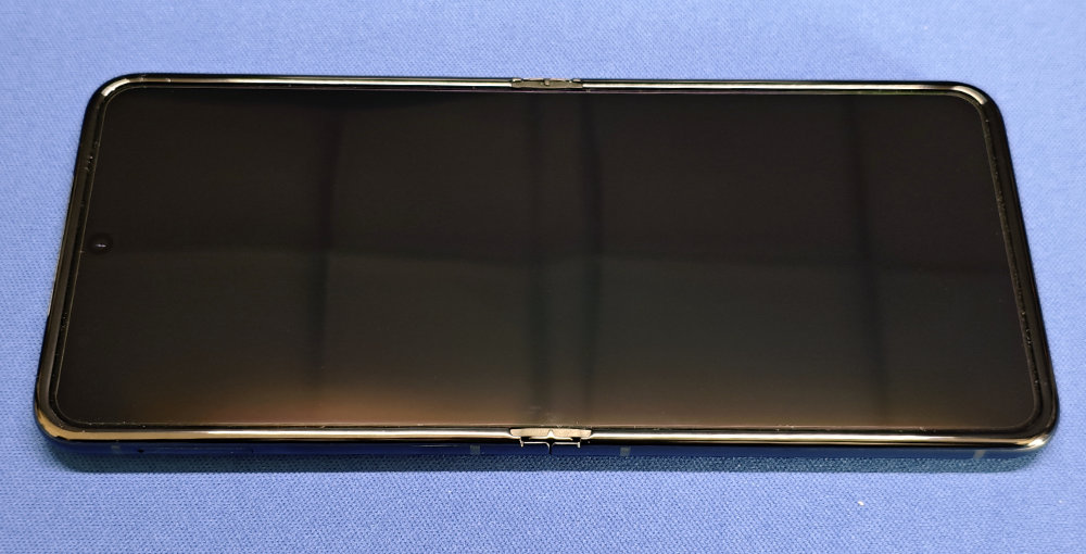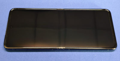 ディスプレイは・・・折れ曲がる中央付近のシワというか波打ちは消灯していると気になりますが、画面点灯するとほとんど気になりません。剥がしちゃいけないスクリーンプロテクターが若干目立つので・・・ついつい剥がしたくなる気持ちもわかりますな。