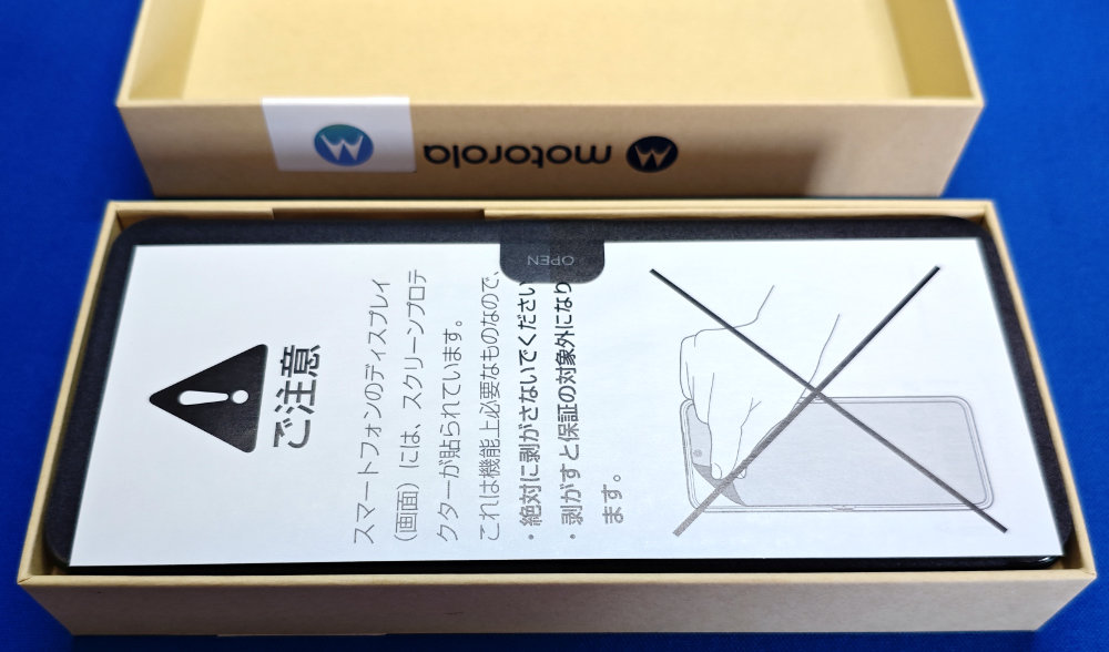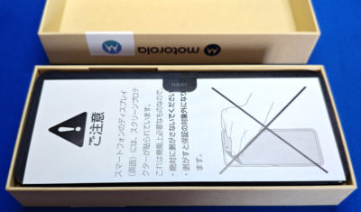 箱を開けるとまずスクリーンプロテクターを剥がすなという注意書き。ええ、存じております・・・剥がしませんよ。