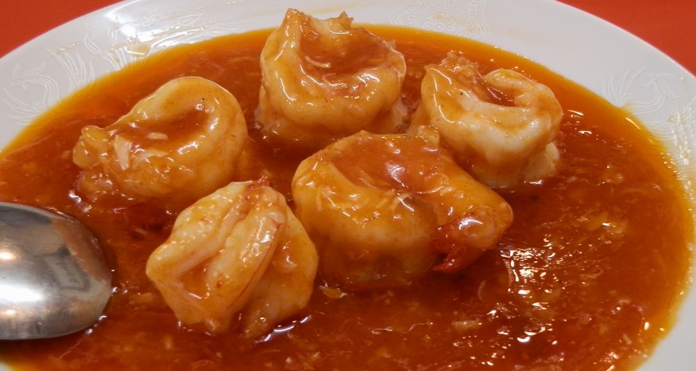 エビチリは・・・こんなに美味しいのは初めて食べました。巨大な海老は一人ひとつずつですが、プリっとしていて香り高くてソースも美味しい。一皿丸々食べたいですよっ!!