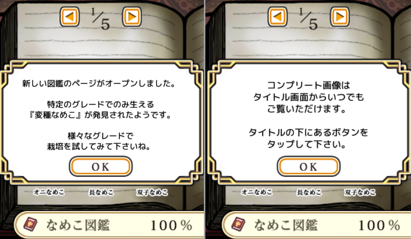 Posted in Software, ひとりごと なめコンプリート!? Author: 管理人 Published Date: 2012/01/16 Leave a Comment on なめコンプリート!? 先週はじめたなめこ栽培。はやくも図鑑コンプリートしちゃいました。 イカ、ネタバレなので・・・ 図鑑はできましたよ。グレード10の装置になった直後でした。 なんかね、こんなダイアログが出ました。 ・・・まだ続くんだ・・・ そんなわけで、図鑑の分母が5から9に増加。それも、特定グレードでしか生えないという・・・ ってことは、いろんなグレード装置で試しながら、まだまだ栽培し続けないといけないんですねぇ・・・ ・・・がんばります♪ Author: 管理人