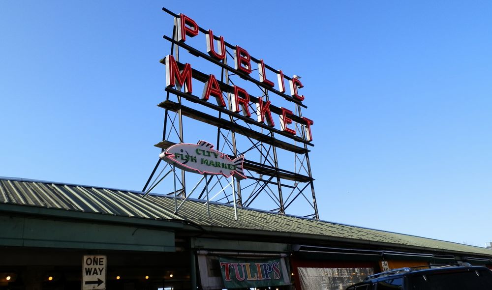 PIKE PLACE MARKET へ。シアトルでも結構有数の観光名所でしょうね、ココは。毎度来ている気がします・・・