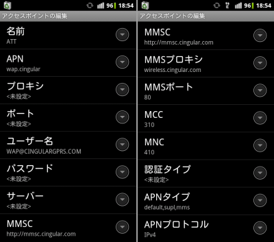 通信事業者は AT&T が何故か2つ見えてます・・・