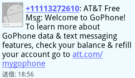 開通方法は、SIM を携帯に入れて611に電話するだけ。すると SMS が届くと共に、APN の設定も自動で実施されます。