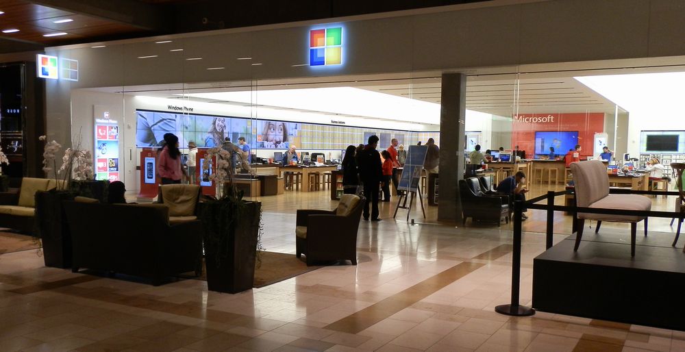 そして、以前はなかった Microsoft Store が数軒間に別の店舗を挟んで近所にできていました。Apple Store の倍の面積があり、とっても広い!!