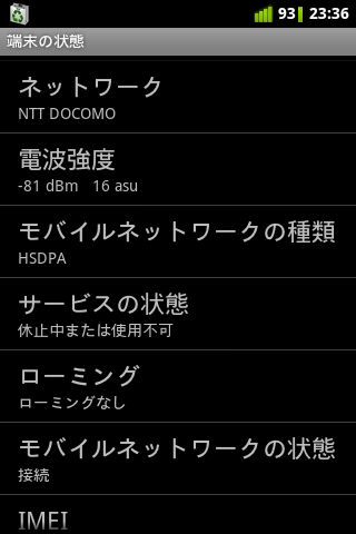 bmobile SIM U300 を挿した状態です。ちゃんとネットワークは DOCOMO になってるし、HSDPA で接続。しかし、「サービスの状態」は「休止中または使用不可」になってる・・・でも、状態は「接続」という不思議な状態。まぁ、音声回線がなく、データ通信だけだからかもしれません。