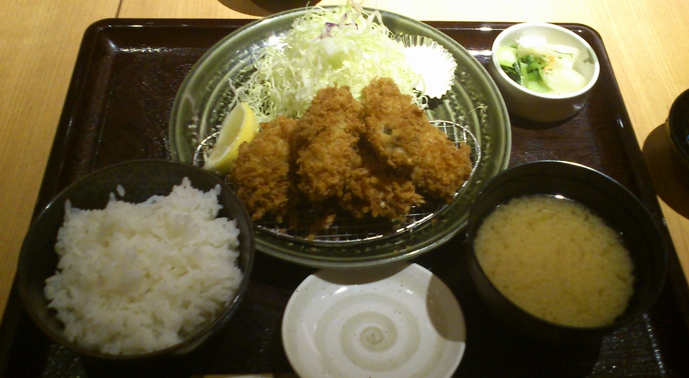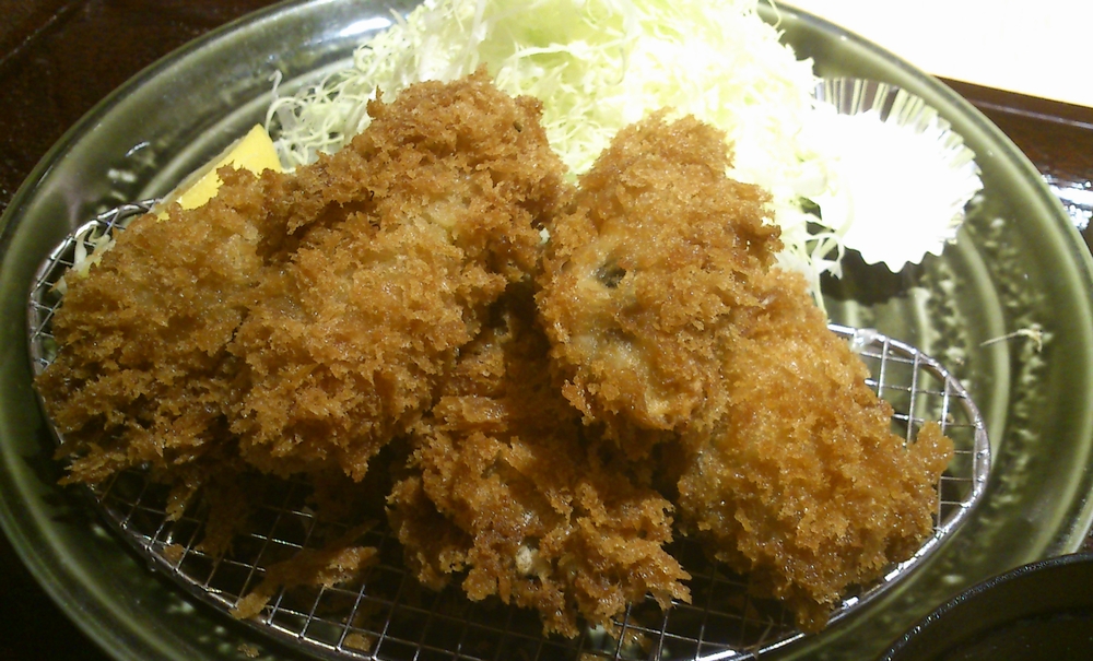 とんかつではなく、カキフライをチョイス。夜遅くにこんなとこ行くなって話しもありますね(笑)