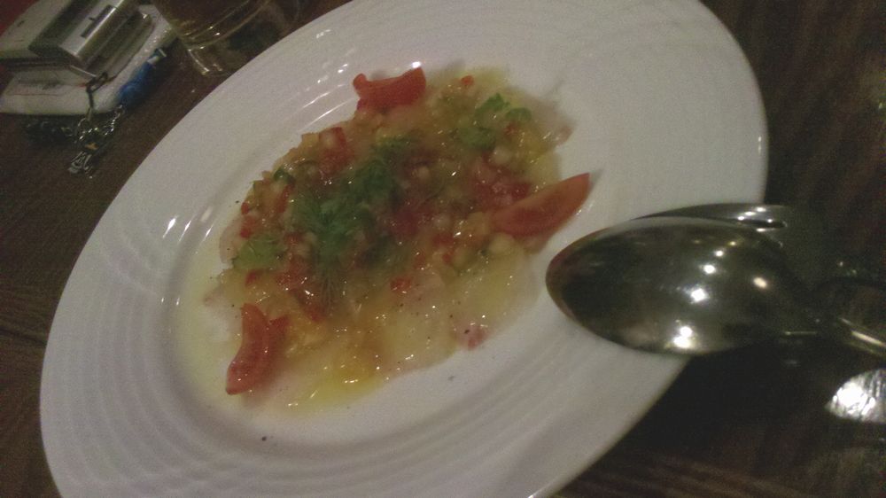 サービスでいただいたカルパッチョ(上の写真)と、ウニのパスタが美味しかった!!