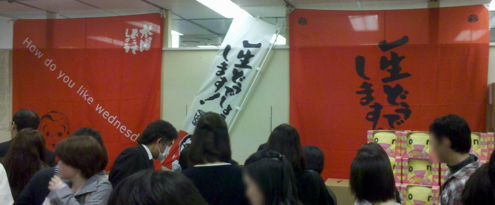 25日水曜日。横浜そごうの催し物会場で、北海道物産展がスタート。今回の目玉は、HTBショップの出店と、on ちゃんず、麻美さん、オクラホマといったHTBのローカルタレントが来るってところ。