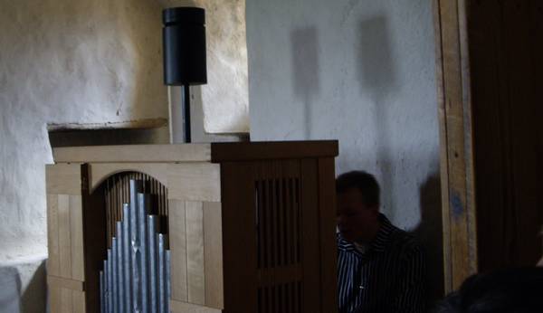 まずはホールで説明を受けた後、螺旋状の狭くて暗い階段を上って塔頂に。教会になっていて、案内のお兄さんが世界最小(と説明では言ってたような・・・) のパイプオルガンを弾きながら歌ってます。ざっと説明があった後、隣の塔頂に移動。移動の途中ではお城の中にあるオペラハウスの屋根も見えます。古い建築 物にモダンな素材が不思議なマッチング。