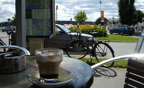 オラヴィ城からハーバーに戻るとさすがに少々お疲れモード。マーケット横のカフェで休憩です。湖からの心地よい風にあたりながら飲カフェモカは・・・甘すぎて少々辛かったりしましたが、Y本氏の奥様がマーケットで買ってきた苺(ハーフリットル2EURO)がとても甘くて(こっちは自然な甘さでOK)、美味しかったです。