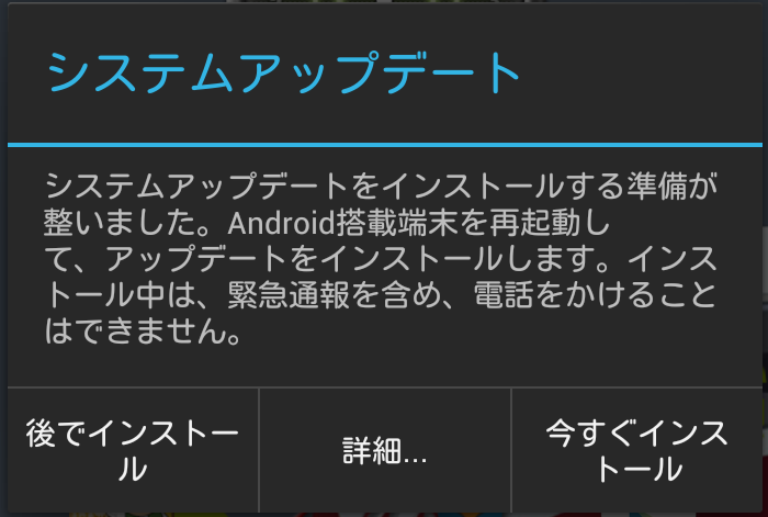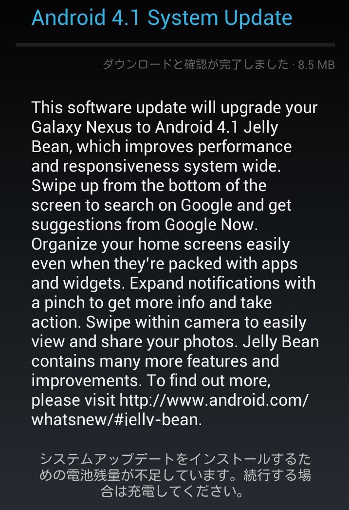 使っているうちに、OTA でアップデートが降ってきました。4.1 から 4.1.1 にするヤツですね・・・