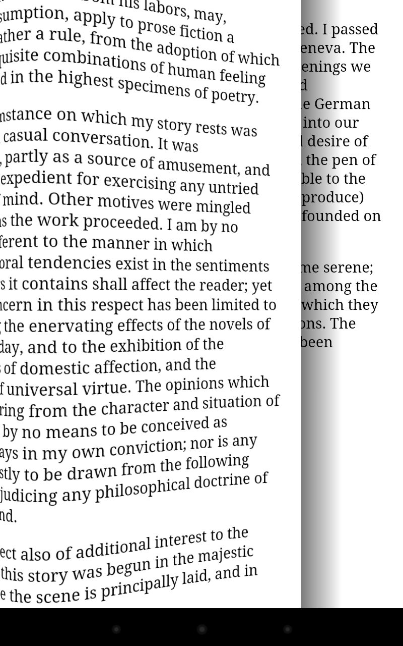 せっかくなので、無料の本をいくつか試してみました。まずは英語の本でフランケンシュタイン。サクサク動作で、結構快適に読書できます。