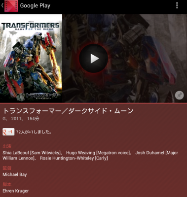 ついでに、映画も1本プレゼント・・・ということで、Google Play で Movie に行くと、「トランスフォーマー/ダークサイド・ムーン」が観れる状態になっておりました。