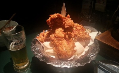このお店の名物、「伝説の若鶏唐揚」です。このボリュームで500円少々というのが驚き。パサパサなお肉ではなく、結構いい部分を惜しげもなく使っています。