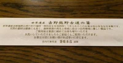 お箸もなんかコダワリがあるようで、持ち帰って使ってね・・・というので、持って帰りました。