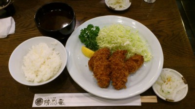 勝烈庵に行ってみました。写真にもありますとおり、お目当ては「始めました」な「かきフライ」。