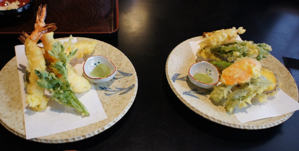 海老と野菜のてんぷらをオーダー。これも絶品ですの。