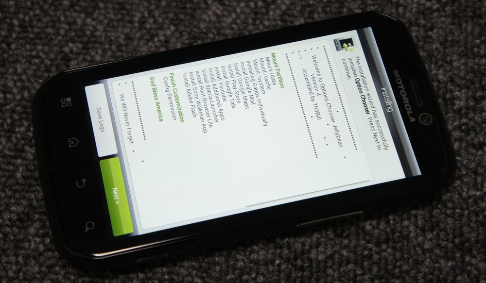 しかし、この Aroma Based な ROM インストールはわかりやすくて良いですね。画面タッチで色々と操作できます。CM10 の ROM は、GSM をチョイス。Option Chooser で色々とオプションを選んで立ち上げました。