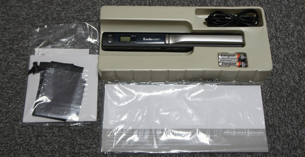 パッケージングが異なりますが、ボタンや液晶表示、コネクタや MicroSD の位置等、この2本は全く同じ。ただし、Kenko の方はリチウム電池でも動作が可能っぽいことが書かれていましたし、光学読み取り部分のナカミもちょっと違って見えましたので、別物かも・・・