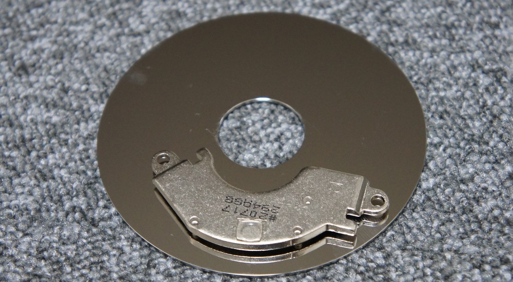 プラッタ(円盤)の上に乗せたのが、ヘッドを駆動させるための磁石になっておりまして・・・これが、結構協力な磁力を持っております。