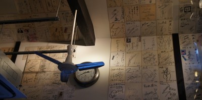 店内は有名人の方々の色紙がたくさん飾ってありました。壁だけかと思ったら、天井までビッシリ!!