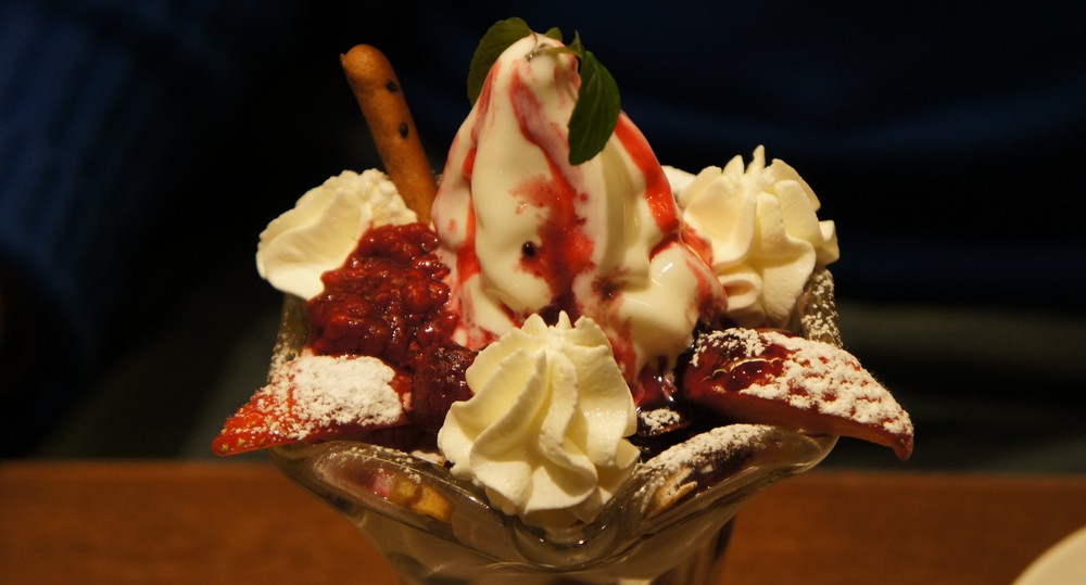 私はソフトクリームを中心に食べたかったので、よつ葉の白いパフェをオーダー。これ、牛乳タップリなソフトクリームと、周囲に少し生クリームがあるだけというシンプルなパフェです。途中にシリアルとか入ってないのが好印象♪