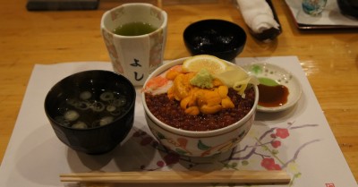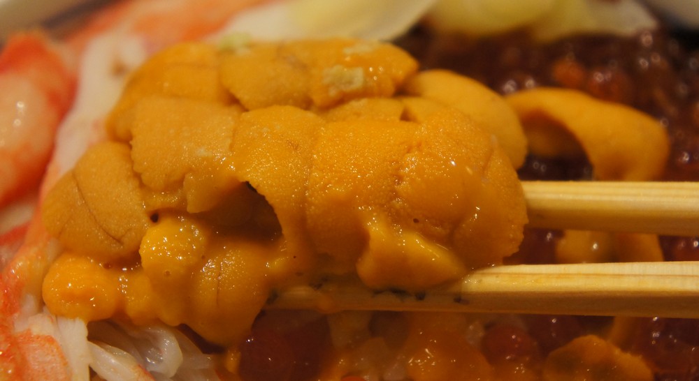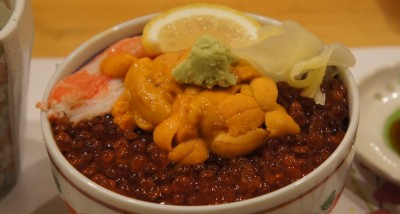 私はウニ、イクラ、カニが楽しめる三色丼にしました。店主さんが丁寧に造り上げてくれました。