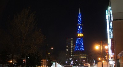 テレビ塔のイルミネーションはですね・・・公園側の1面しかされていません。なので、横から見ると悲しい感じ(笑)。