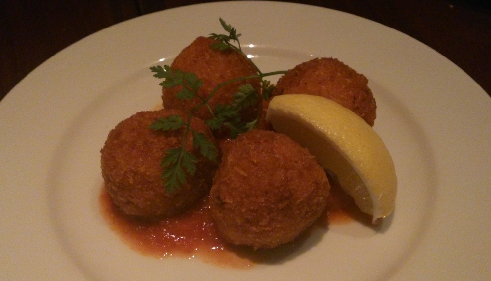 リゾットのコロッケ。中には大量のチーズがトローリと入っています。