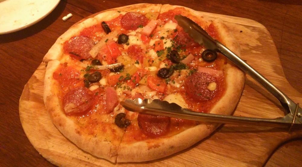 最後にカプリチョーザピザ。具だくさんですが、既にお腹いっぱいですね。他にもサラダが出ましたね。