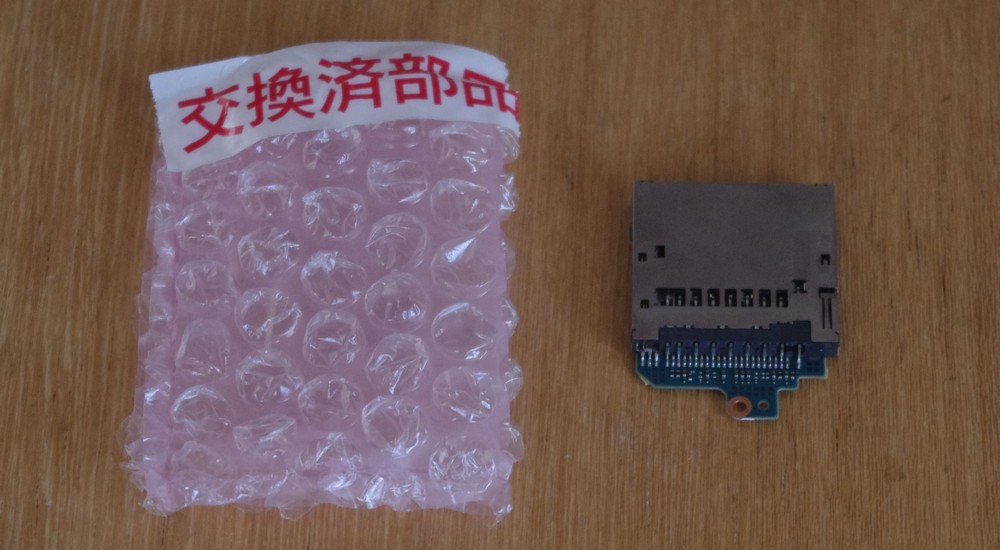 密封された状態で帰ってきました。メモリカードスロットの交換がされたとのことで、交換後はちゃんとロックがかかるようになりました。