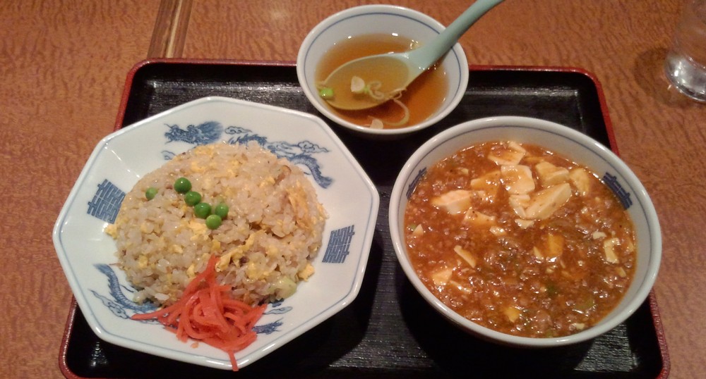 炒飯麻婆豆腐定食950円をオーダー。普通の麻婆豆腐定食はなかったので、炒飯とのセットで。