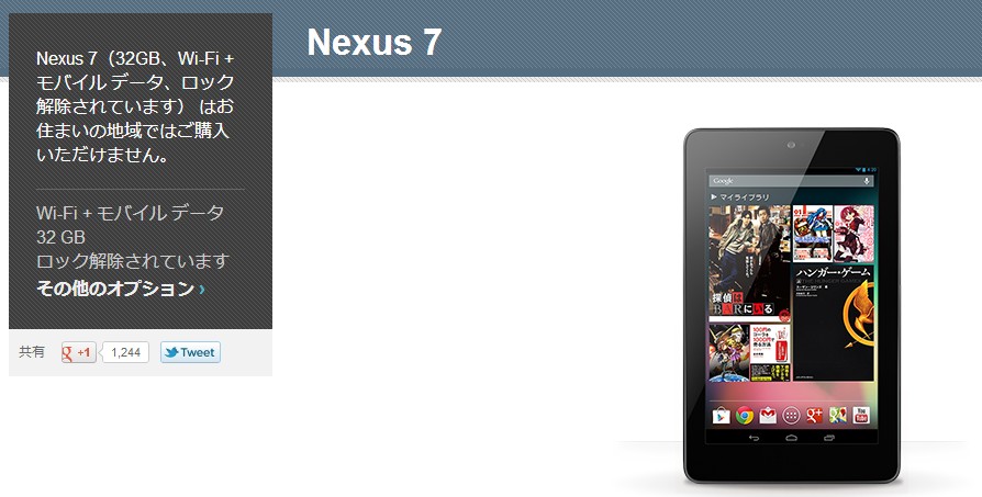 アメリカではとうの昔から販売されている、Nexus 7 の WCDMA/HDPA+ 対応版、いわゆる 3G 対応版がようやく日本でも販売開始となるそうです。