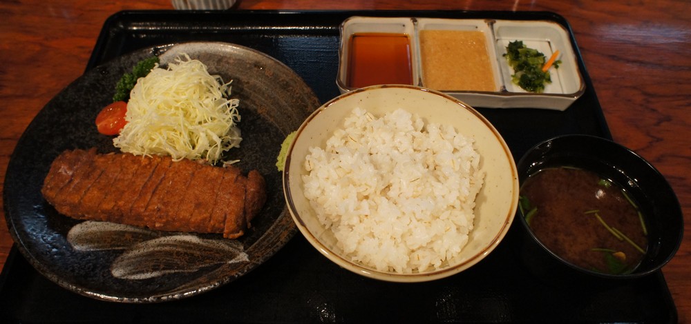 ランチにしてはちょっと高めですが、夕飯ならアリかな、っていう1200円な牛ロースかつ・セットをオーダー。(小)は売り切れだそうな。