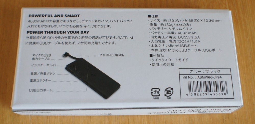 モバイルバッテリーとしては、4000mAh という容量はなかなか大きいんじゃないですか。