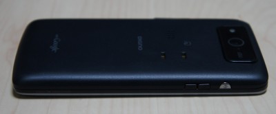 左側には電源ボタン、ボリュームボタンが。背面カメラは800万画素。クレードル用の接点が出ています。