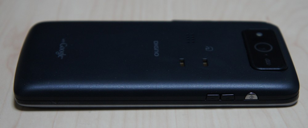右側には防水用のカバーが付いた microUSB コネクタ、ワンセグアンテナがあります。Android 4.0 なのに、物理ボタンが3つというのは珍しいですね。