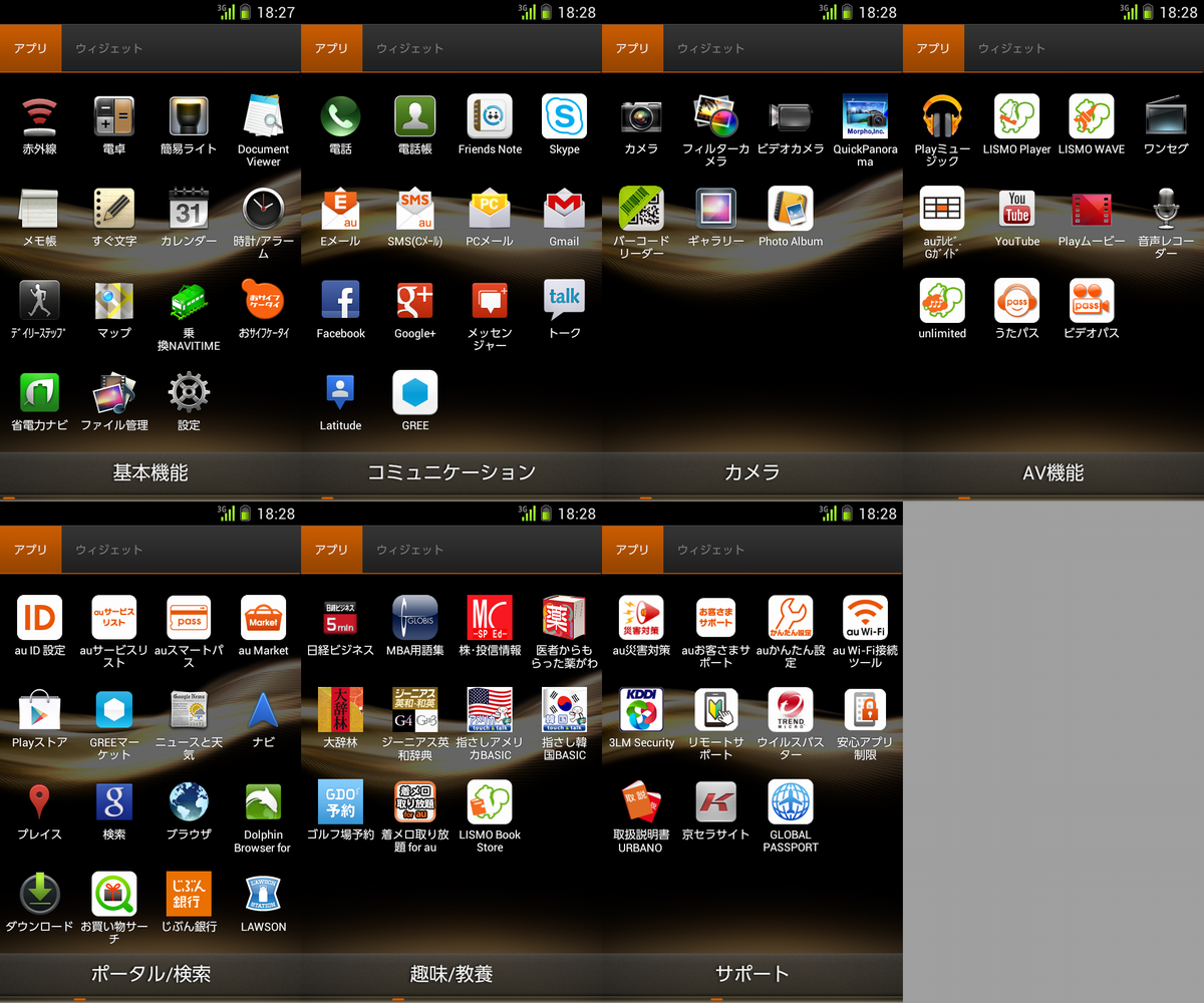 アプリは盛りだくさん・・・この辺りはガラスマ臭がプンプンしますね・・・au のアプリも docomo に負けない位ウザイっすね・・・