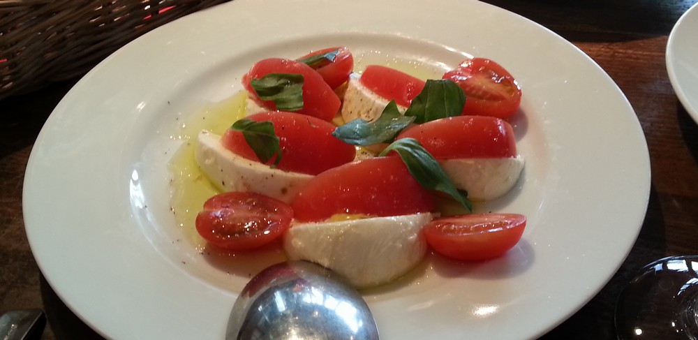 ビール飲みながらカプレーゼ モッツァレッラ&フレッシュトマト。モッツァレラが美味しい♪
