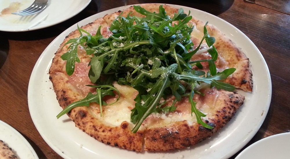 生ハムとルッコラのピッツァ。さすがに釜での焼きたてだけあって、美味しいです。ちょっとお値段しますが、ここのピッツァはなかなか美味しいですぞ。