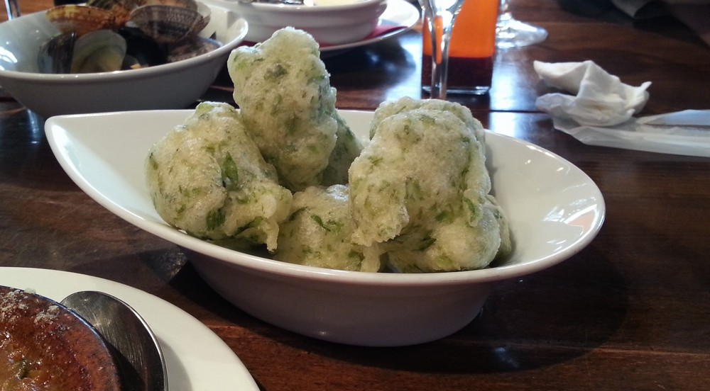 こちらはメニューになかったらしいけど、「青のりとピザ生地の・・・」といったら作ってくれたゼッポリーニ。あまりにも美味しくて酒のツマミになるので、3皿も頼んでしましました(爆)。