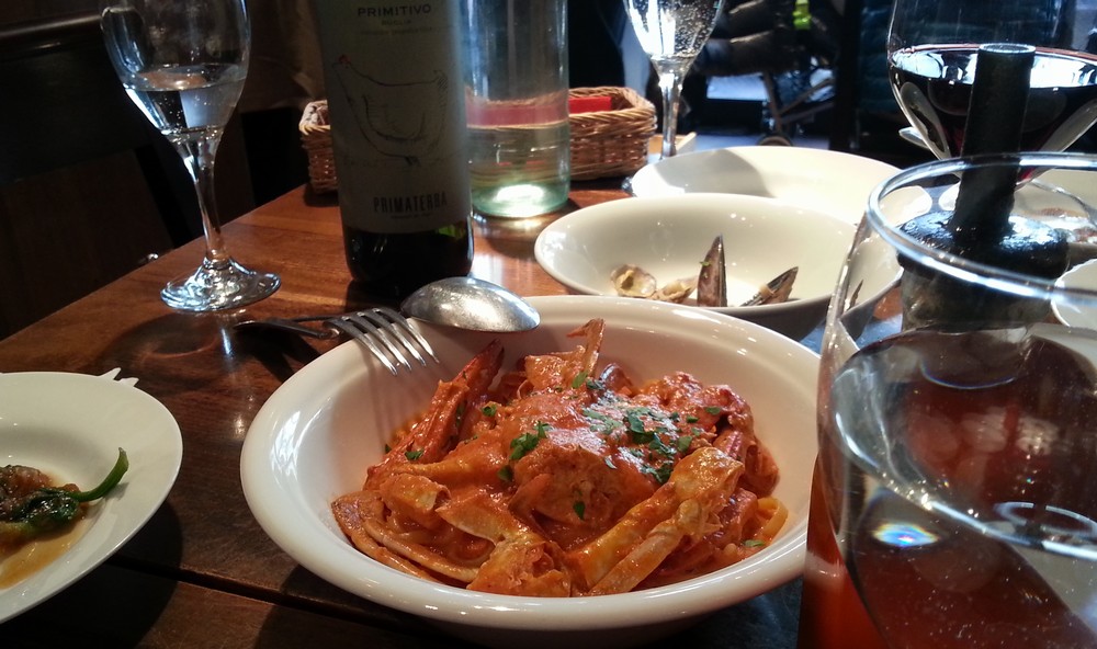 パスタは渡り蟹のトマトクリーム リングイネ。この辺りからワイン登場・・・