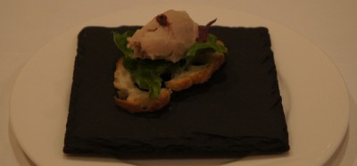 アミューズは豚のリエットが乗ったバケット。サクサク感とアッサリとした豚のリエットがナイスなバランス。シャンパンが進みます♪