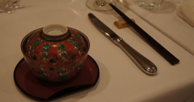 コルクの箸置きでお箸が出てきたと思ったら、お椀が出てきました。