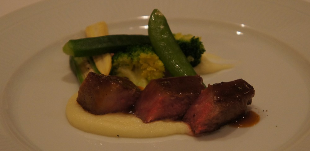 メインは和牛のサーロイン。マッシュポテトと温野菜。和牛が美味しいのは当然としても、どうにもこのマッシュポテトが尋常じゃない美味しさ。お肉に合う合う♪