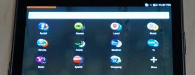 ホームから左に行くと、アプリの検索画面。この辺りは iOS っぽいですね。文字列での検索だけでなく、カテゴリごとにグルーピングされたアイコン群も並んでいます。