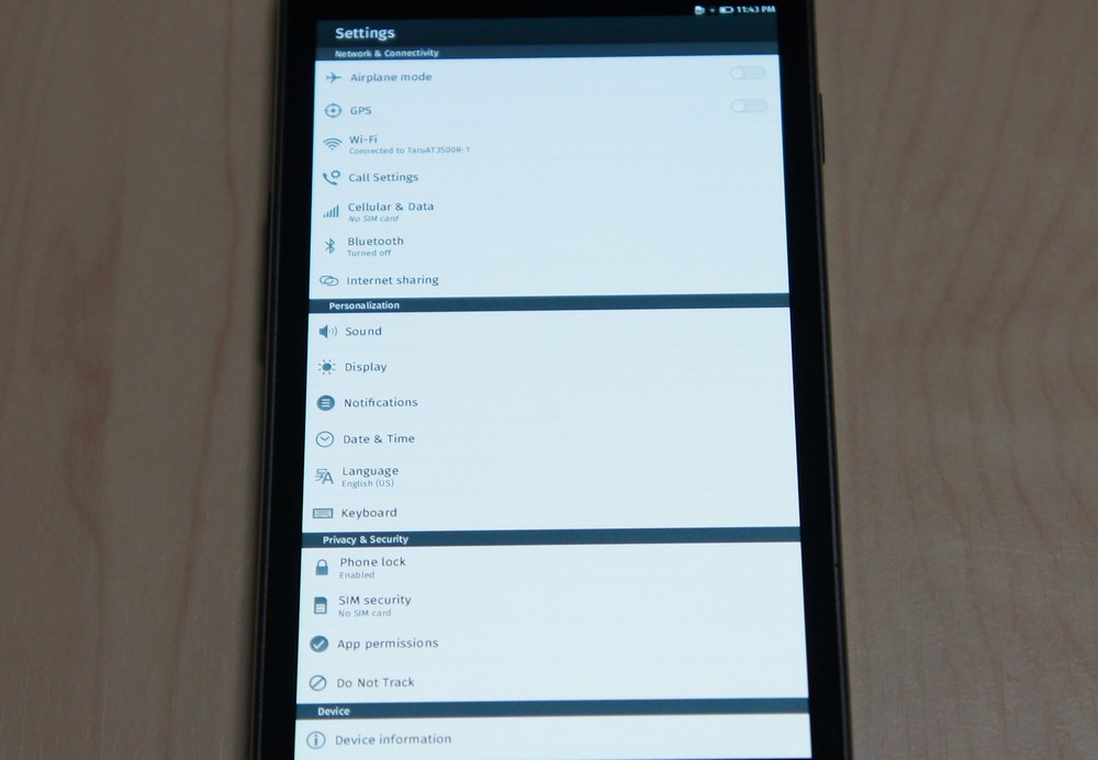 設定画面は Android っぽいですね。