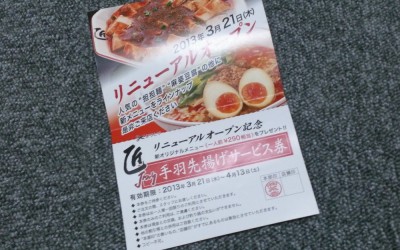 閉店直後に、店頭で配布されていた手羽先揚げの無料サービス券を使ってみました。